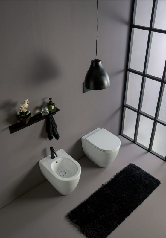 - Bidet "Arcadia" a terra o sospesi, varietà di colorazione molto ampia, alcuni di essi comprendono la piletta in ceramica per una continuità del materiale e per inserire rubinetteria diversa dal cromato.